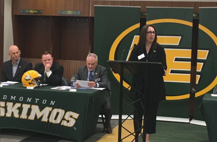The Eskimos unveiled the surplus in Janice Agrios’ report tabled Tuesday at the CFL club’s annual general meeting.