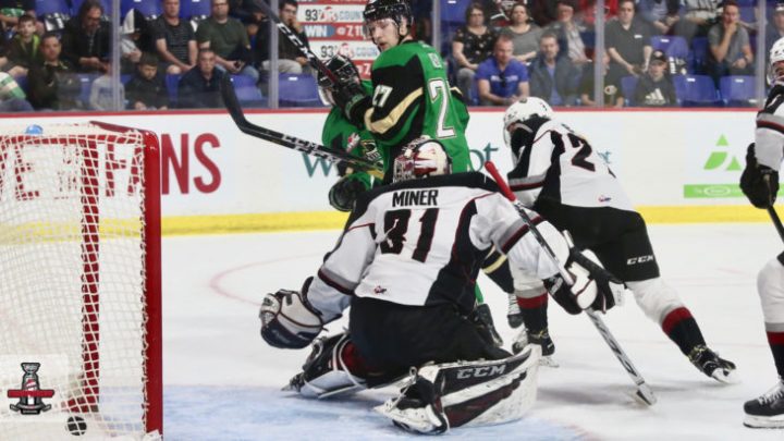 The Raiders opened the scoring 41 seconds into the game on Kelly’s first goal of the game, and went up 2-0 at the 2:27 mark on Wiesblatt’s power-play goal.