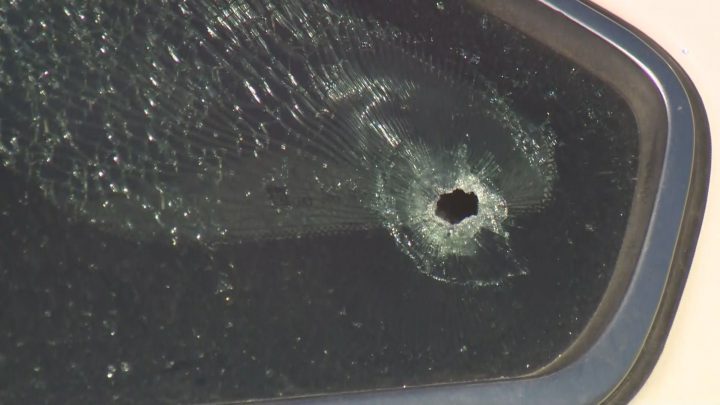 A car’s driver side door was shattered, and there was a bullet hole in the rear driver-side window. A tow-truck arrived to take the car at about 8 a.m.