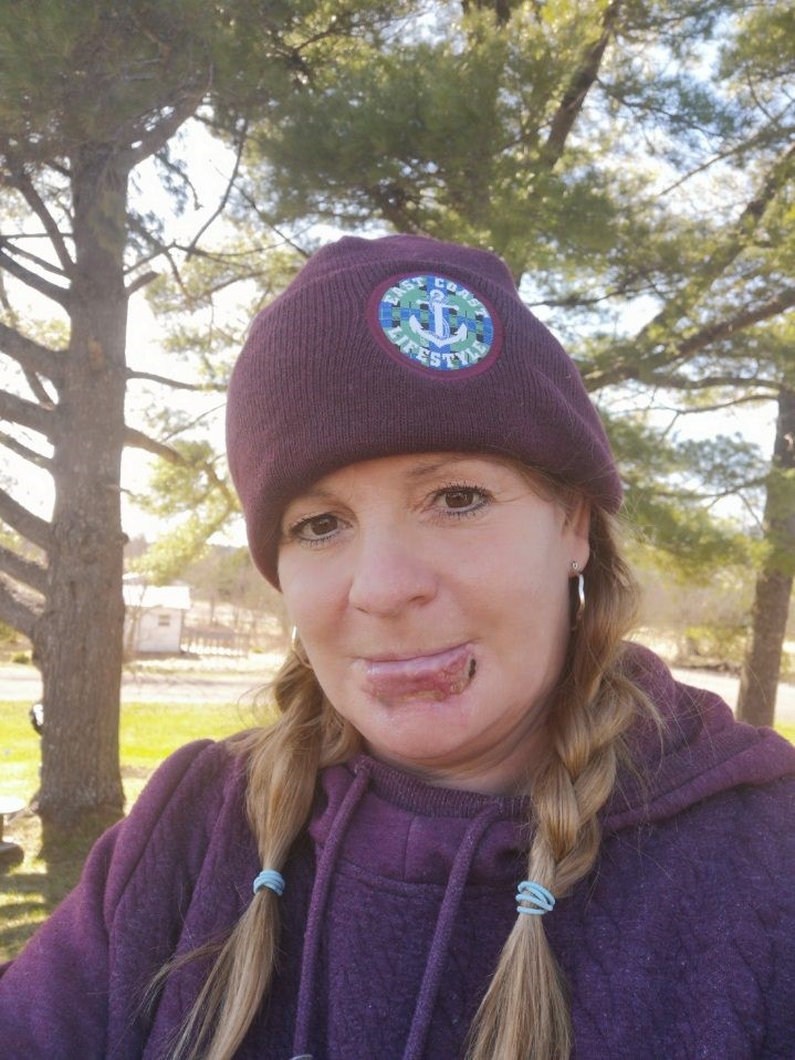 Deschenes ended up spending several weeks in hospital and undergoing four blood transfusions to repair her lip.