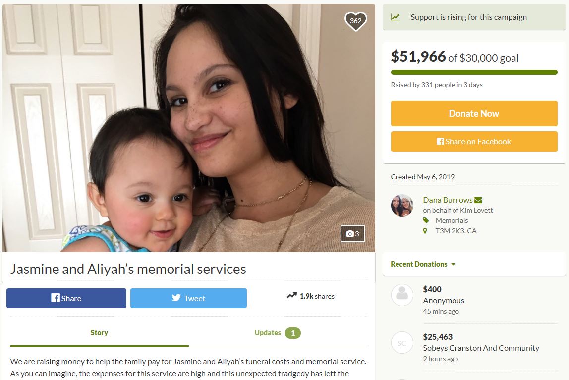 The family of Aliyah Sanderson say they’re “overwhelmed” by community support they’ve received since the deaths of the 22-month-old child and her mother, Jasmine Lovett.