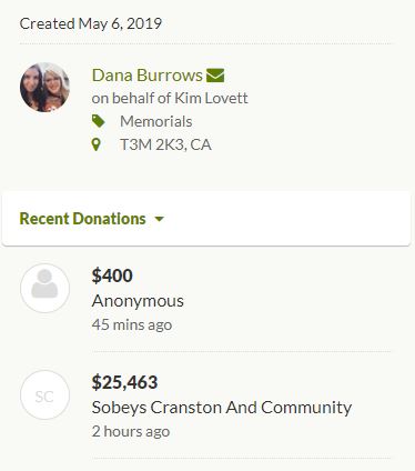Dana Burrows, who launched the GoFundMe page, said Thursday that any money raised above and beyond the costs of the memorial services would be donated to a Calgary women’s shelter.
