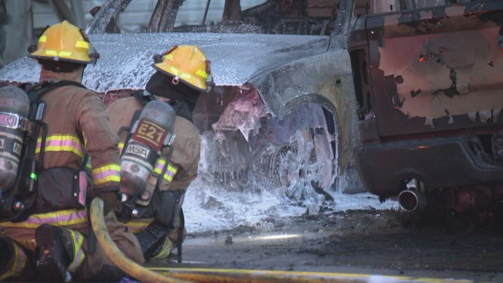 Crews were called to the area around 4:30 a.m. following several calls to 911 reporting flames coming from multiple homes and cars in the area.