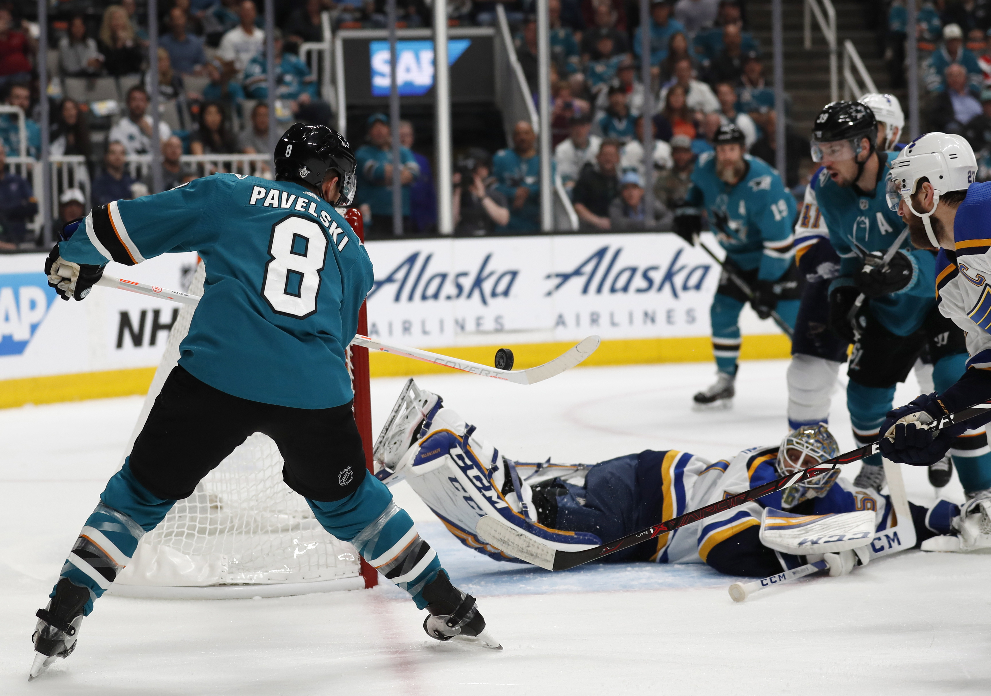 The Blues answered with Edmundson’s goal but then committed two penalties in a span of 57 seconds after going more than 136 minutes without one in the playoffs. That gave San Jose a two-man advantage that Pavelski converted into a goal when he batted his own rebound out of midair into the net for his second goal in as many games after missing six contests following a bloody concussion.
