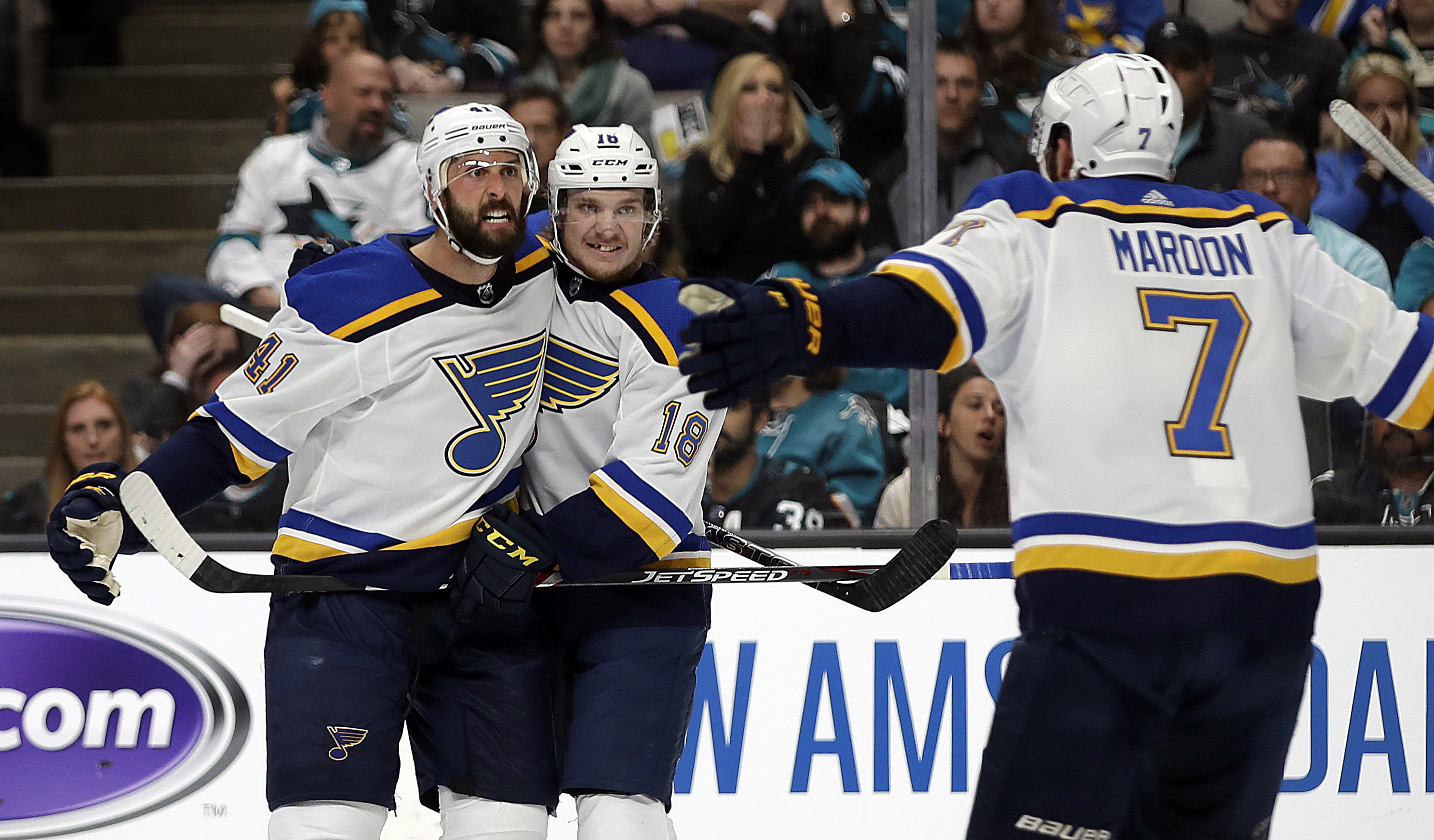Bortuzzo added a big blocked shot in the third when Kevin Labanc got a pass in the slot with time to shoot. The Blues then killed off a power play later in the period before getting the insurance goal with 3:08 remaining when Alexander Steen fed Sundqvist on a rush for the goal that made it 4-2.
