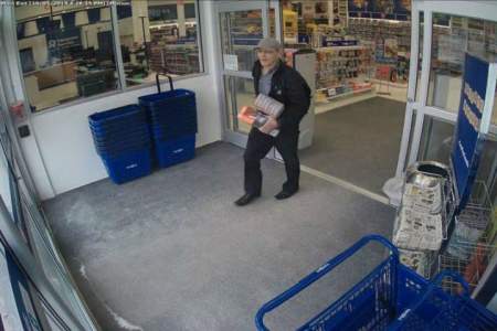 As the suspect exited the store during his third visit, police say, an anti-theft alarm sounded.
