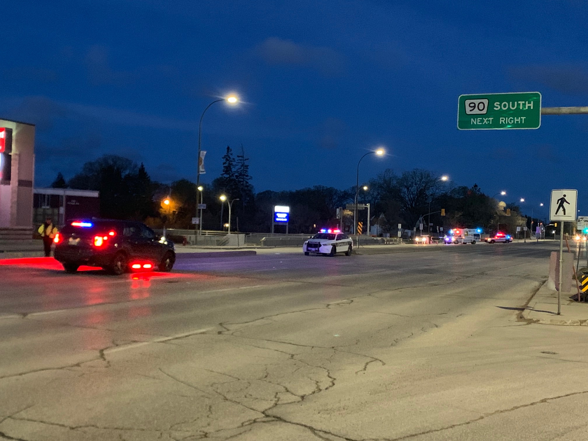 All four lanes of eastbound Portage Avenue were closed off at Kenaston Boulevard Wednesday night at about 11:30, but re-opened before the morning rush.