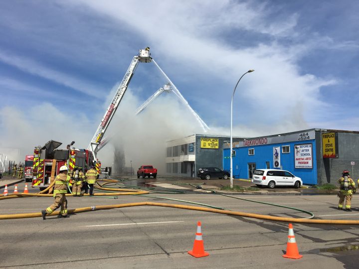 100 Avenue was closed to traffic between 166 Street and 169 Street while crews battled the fire. Drivers are asked to avoid the area.