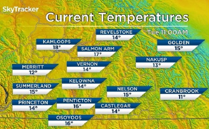 In related news, Environment Canada issued a minor thunderstorm forecast for the Central Interior, Howe Sound and Lower Mainland. That minor thunderstorm, though, is not expected to impact the Boundary, Okanagan, Shuswap or Similkameen regions.
