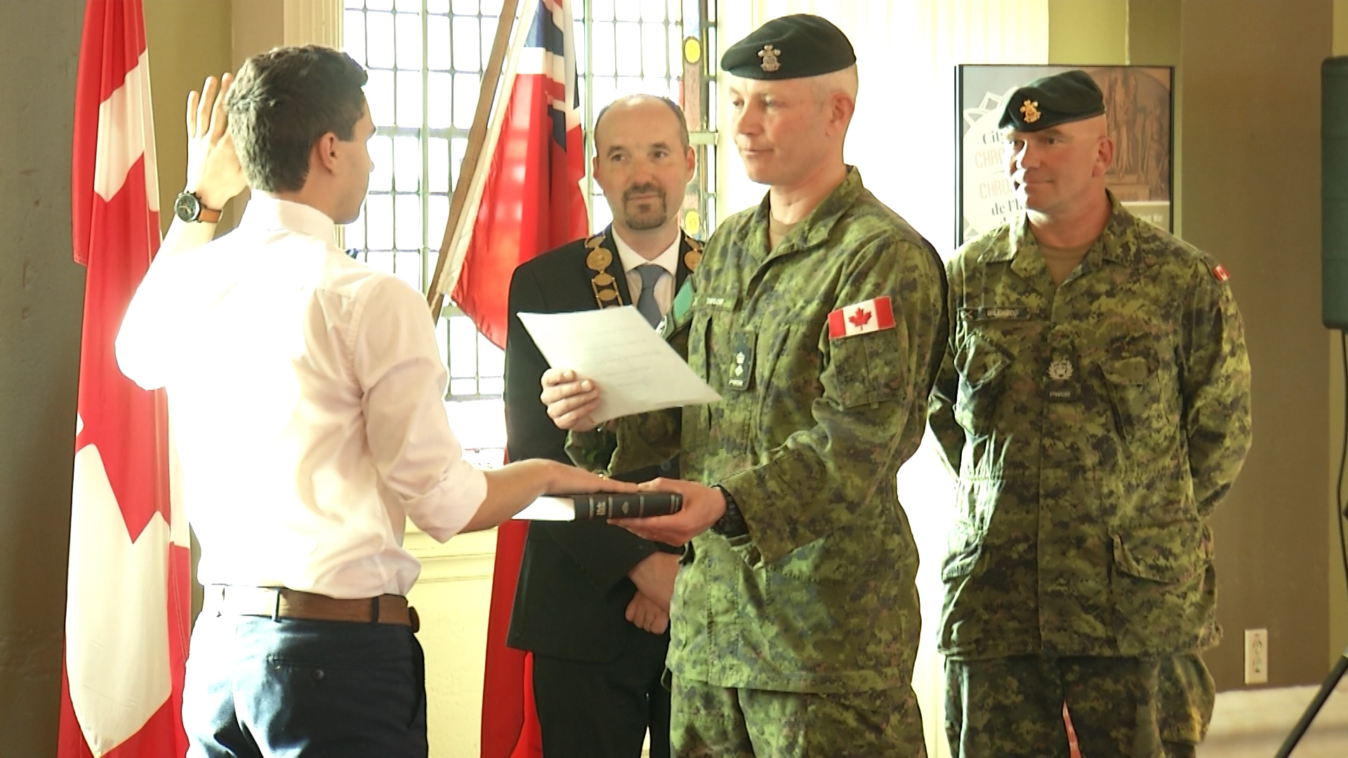 A large military ceremony took place at Kingston City Hall on Tuesday evening as recruits were welcomed into the local army and navy reserves.