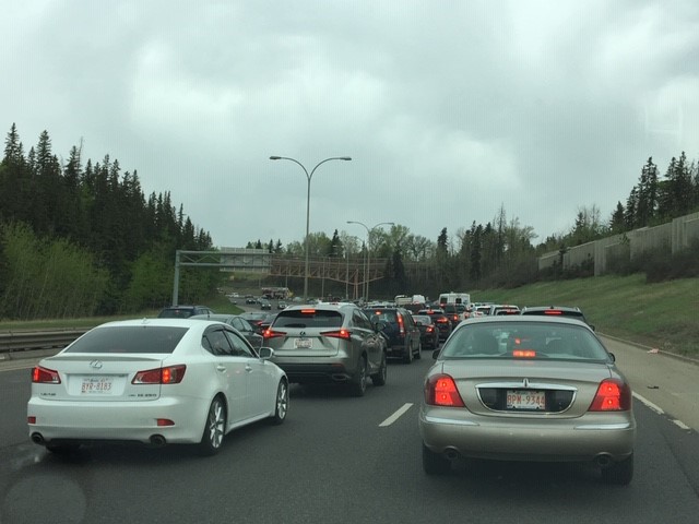 According to City of Edmonton traffic cameras, at 10 a.m., westbound traffic could be seen backed up to Terwillegar Drive.