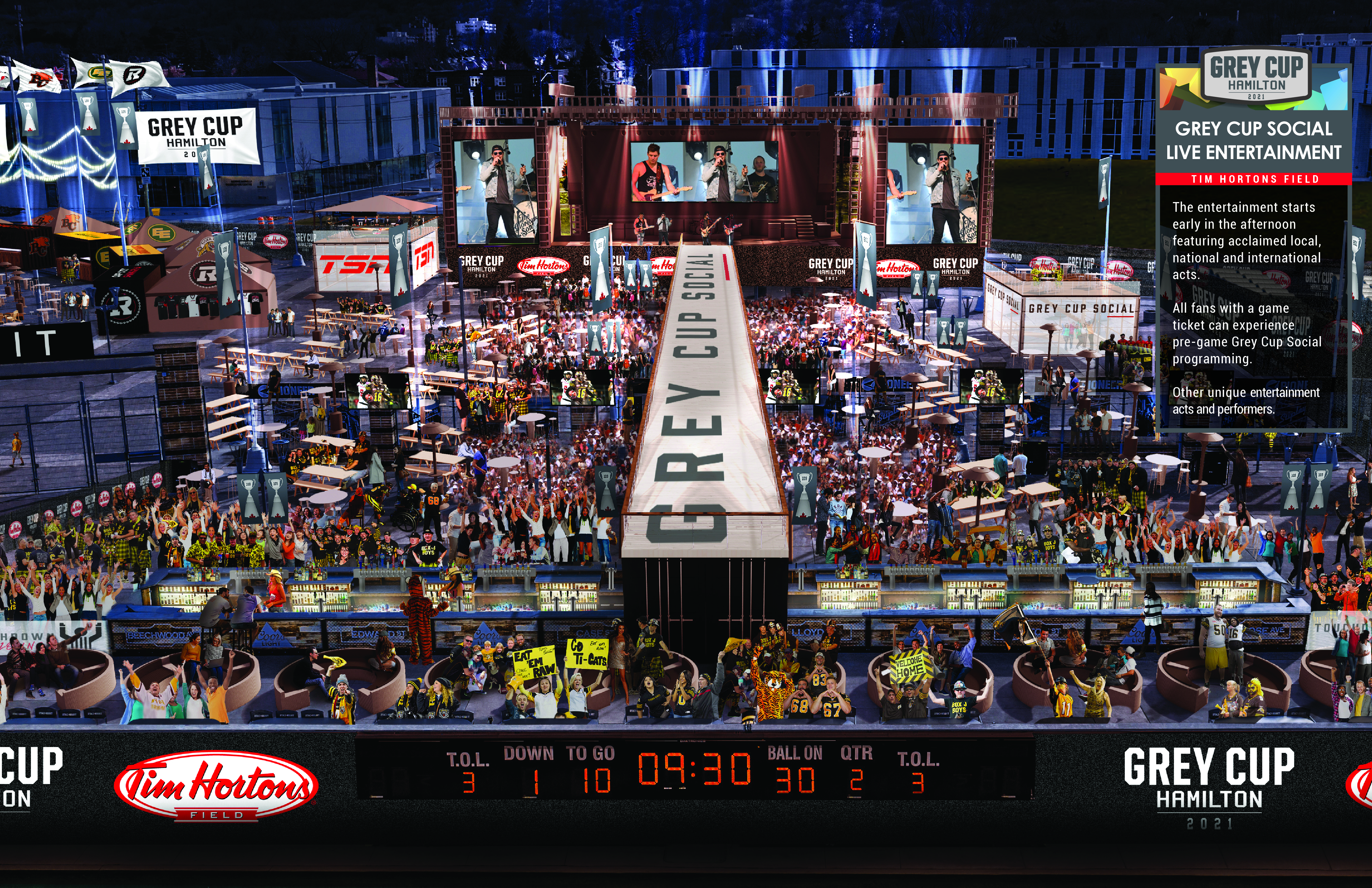 The south plaza social experience is billed as an outdoor music festival meets food and drink expo, set in the backdrop of the Grey Cup game.