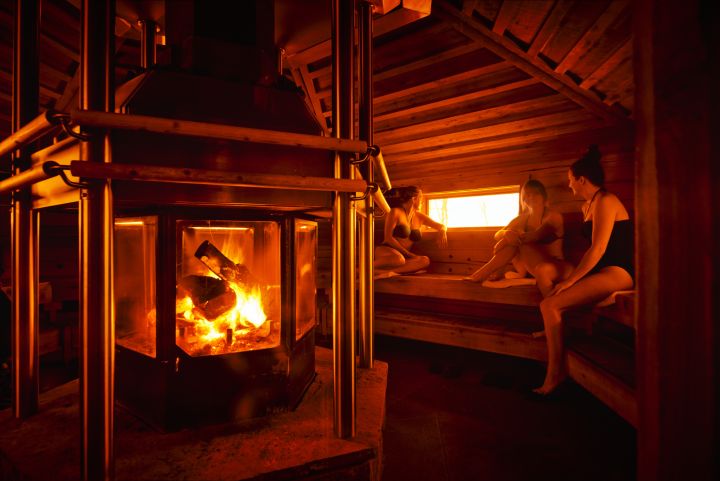 A full thermal cycle starts with a few moments in the sauna. After a good sweat, you jump into cold water — either a temperate pool or a cold river — just for a few seconds to feel the adrenaline rush. From there, you find a nice, relaxing place to let the endorphins take over.