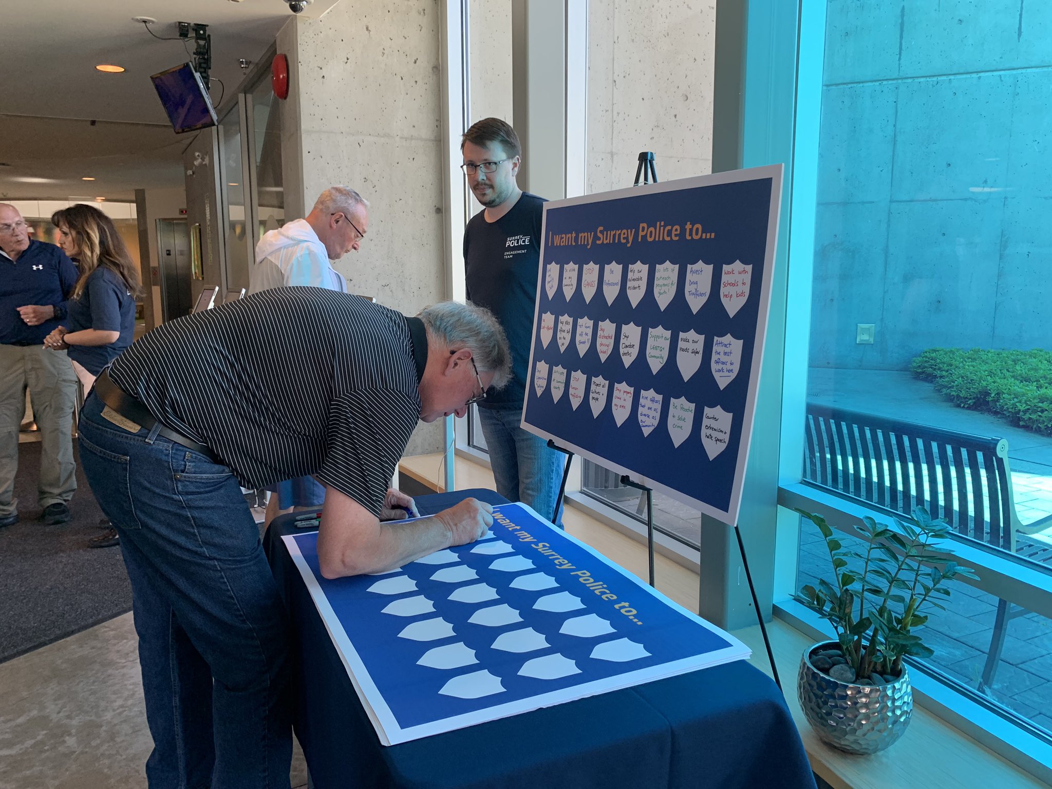 Dozens of residents flocked to the Cloverdale Recreation Centre to get a first look at the ideas being put forth for the new force and tell the city what they’re looking for.