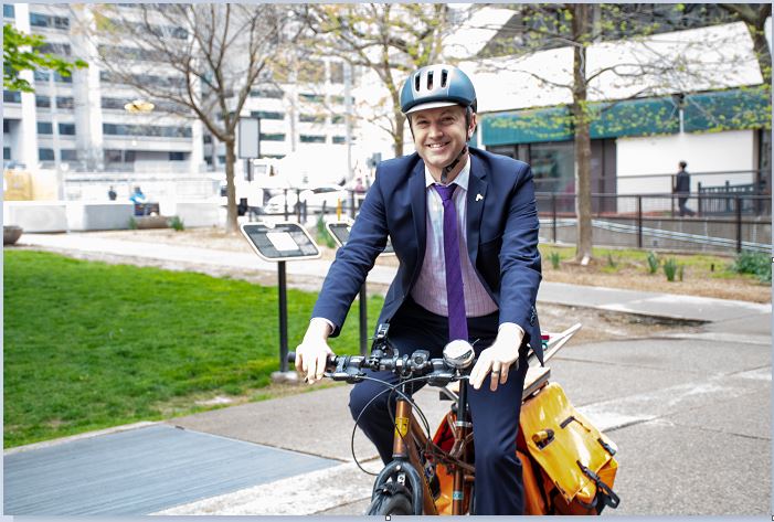 Mike Layton, a Toronto city councillor, says biking to work cuts down commuting time and helps the city with active transportation. Over the years, Layton and another councillor, Joe Cressy, have helped many downtown residents by developing new bike lanes to promote cycling to work.