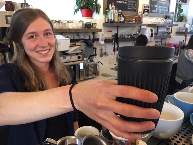 A feeling shared by Ratio Café customer Eli Garlick, who says he has a Huskee coffee cup.