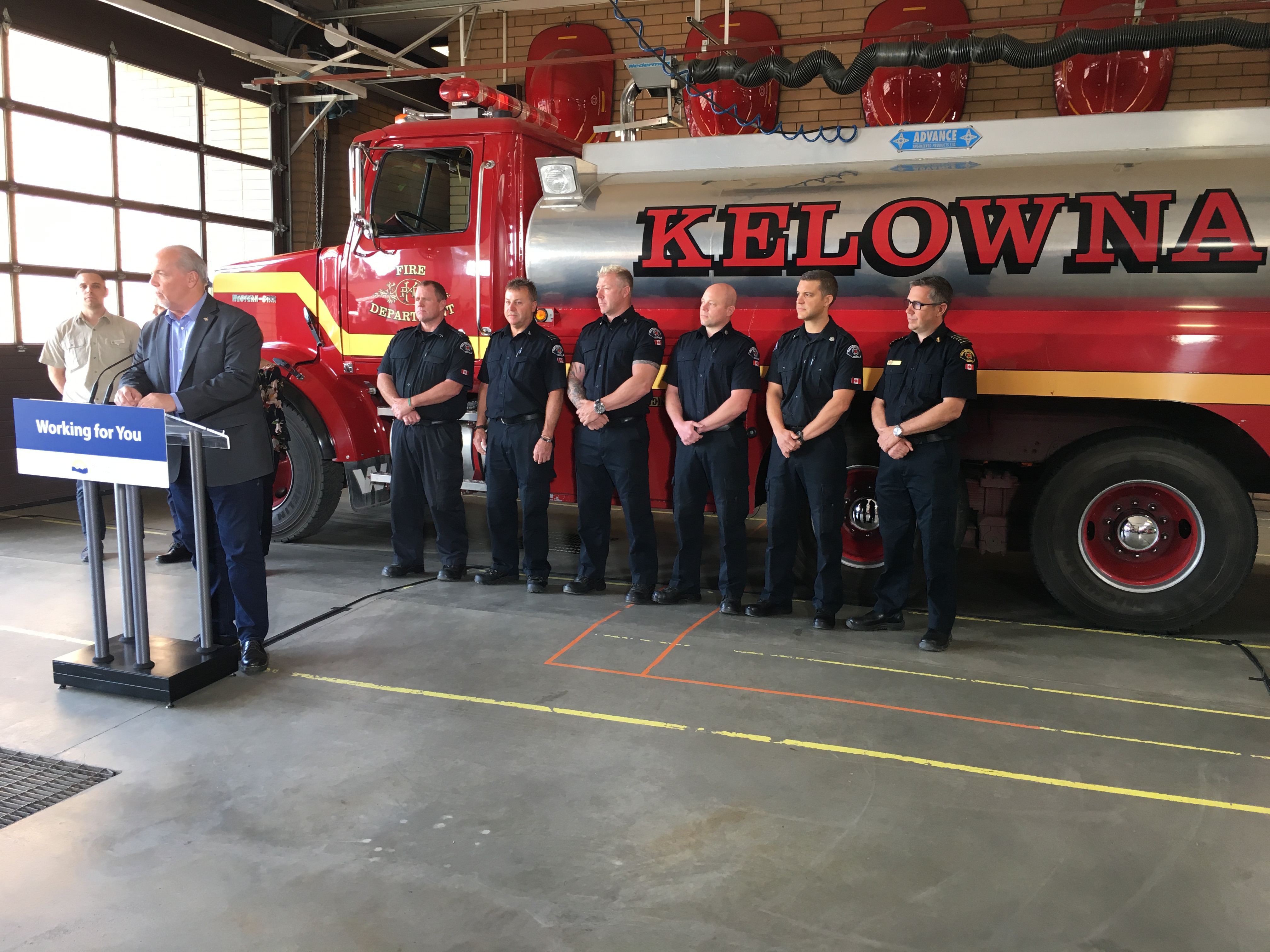 Horgan made the announcement at Kelowna’s main fire hall on Enterprise Way.