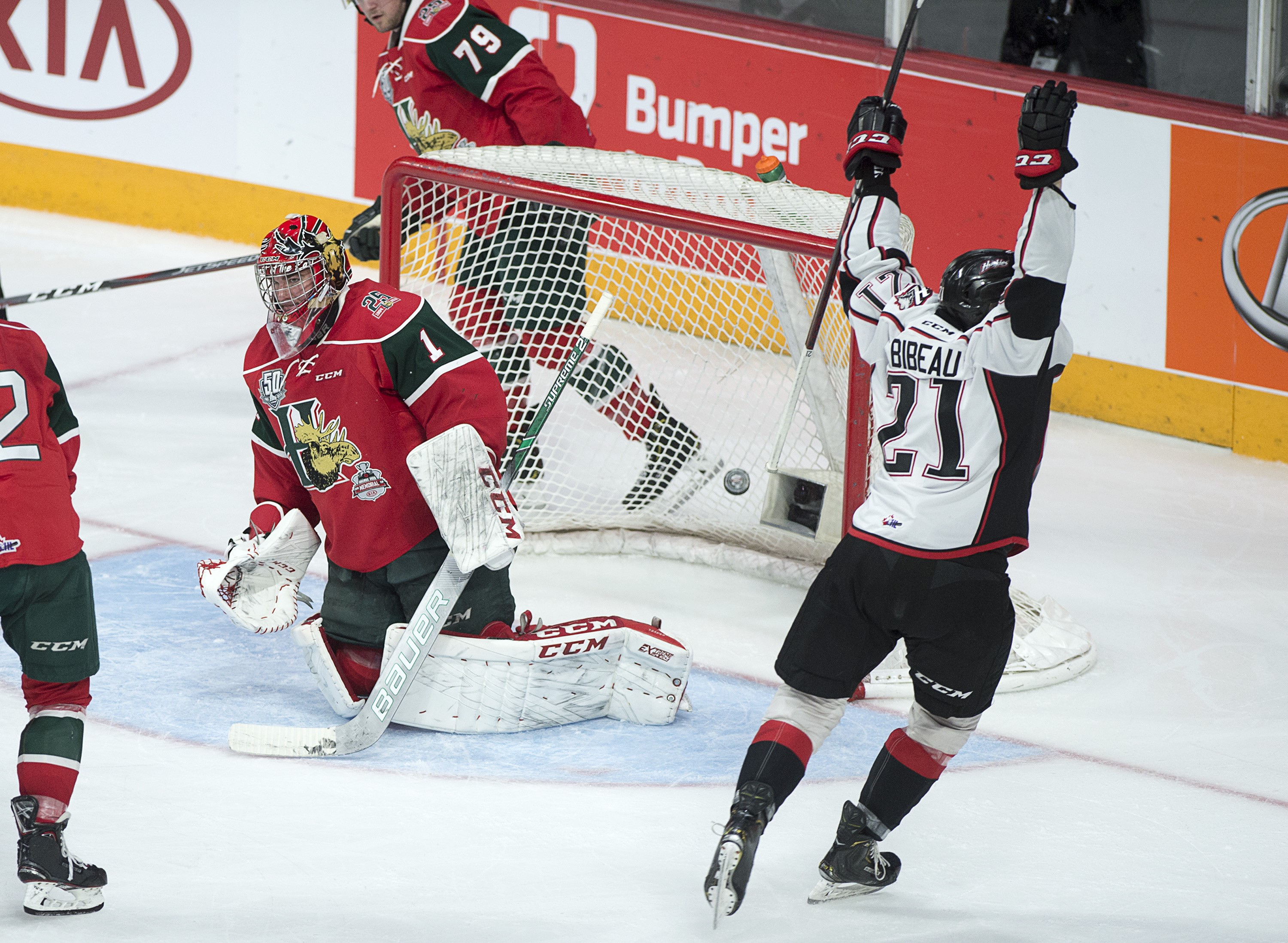 Felix Bibeau, Joel Teasdale and Vincent Marleau also scored for the Quebec Major Junior Hockey League champion Huskies. Samuel Harvey stopped 23 shots.