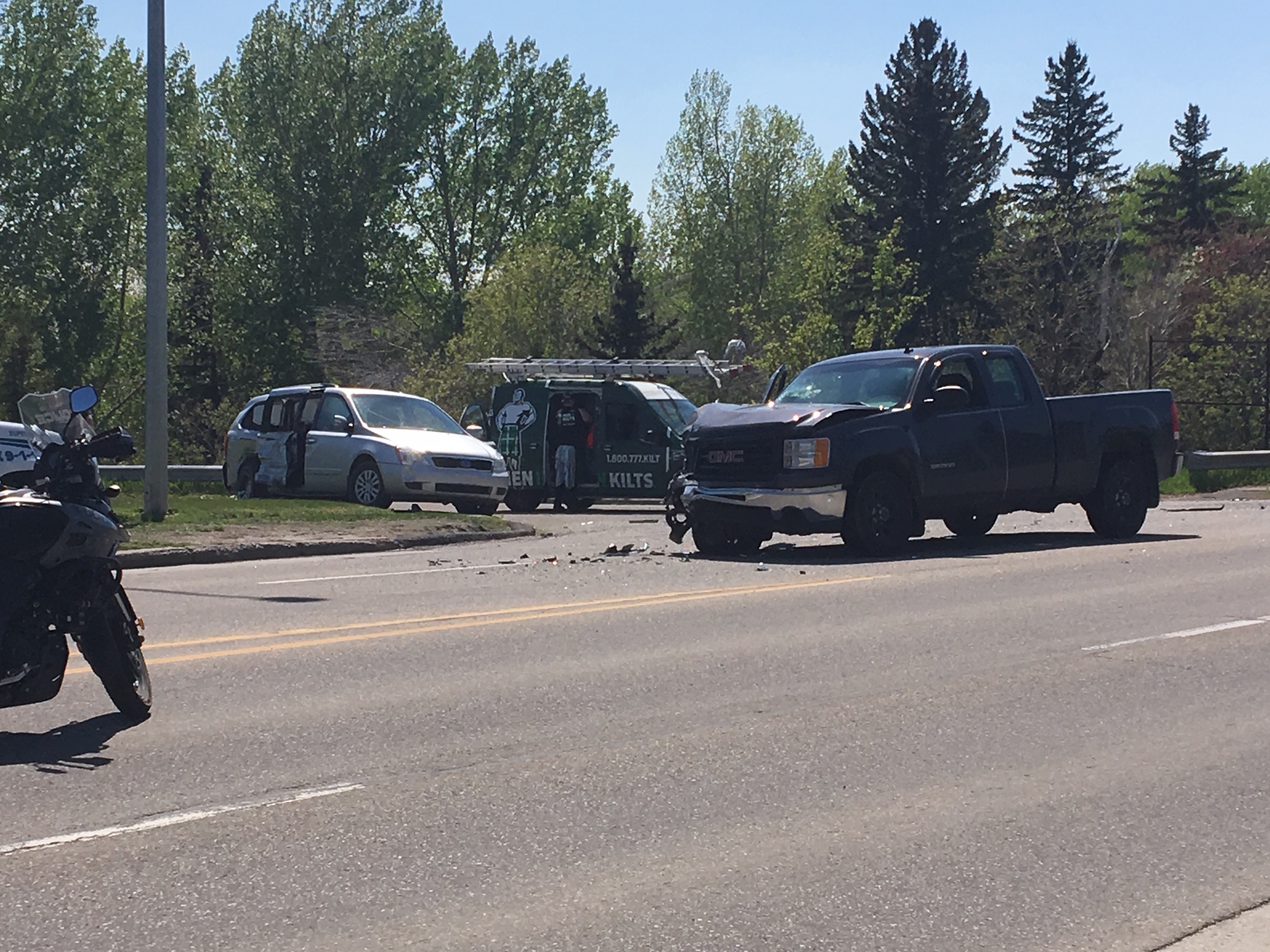 “I believe the pickup truck was travelling eastbound on McKnight Boulevard and the minivan may have been attempting to turn southbound on… Laycock Drive,” said Calgary Police Service Acting Sgt. Jason Van Dorp. “That’s the early preliminary investigation, but at this point, that’s what I believe happened.