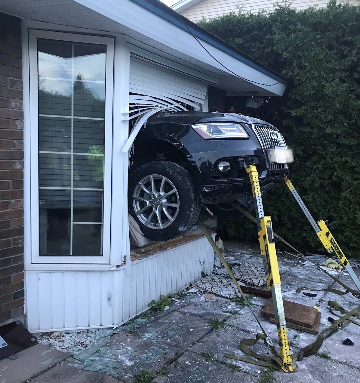 Firefighters had to extricate the injured person, who had been sitting on a couch when the car came through the room. When it stopped, the car was partially resting on the same couch, the fire department said.