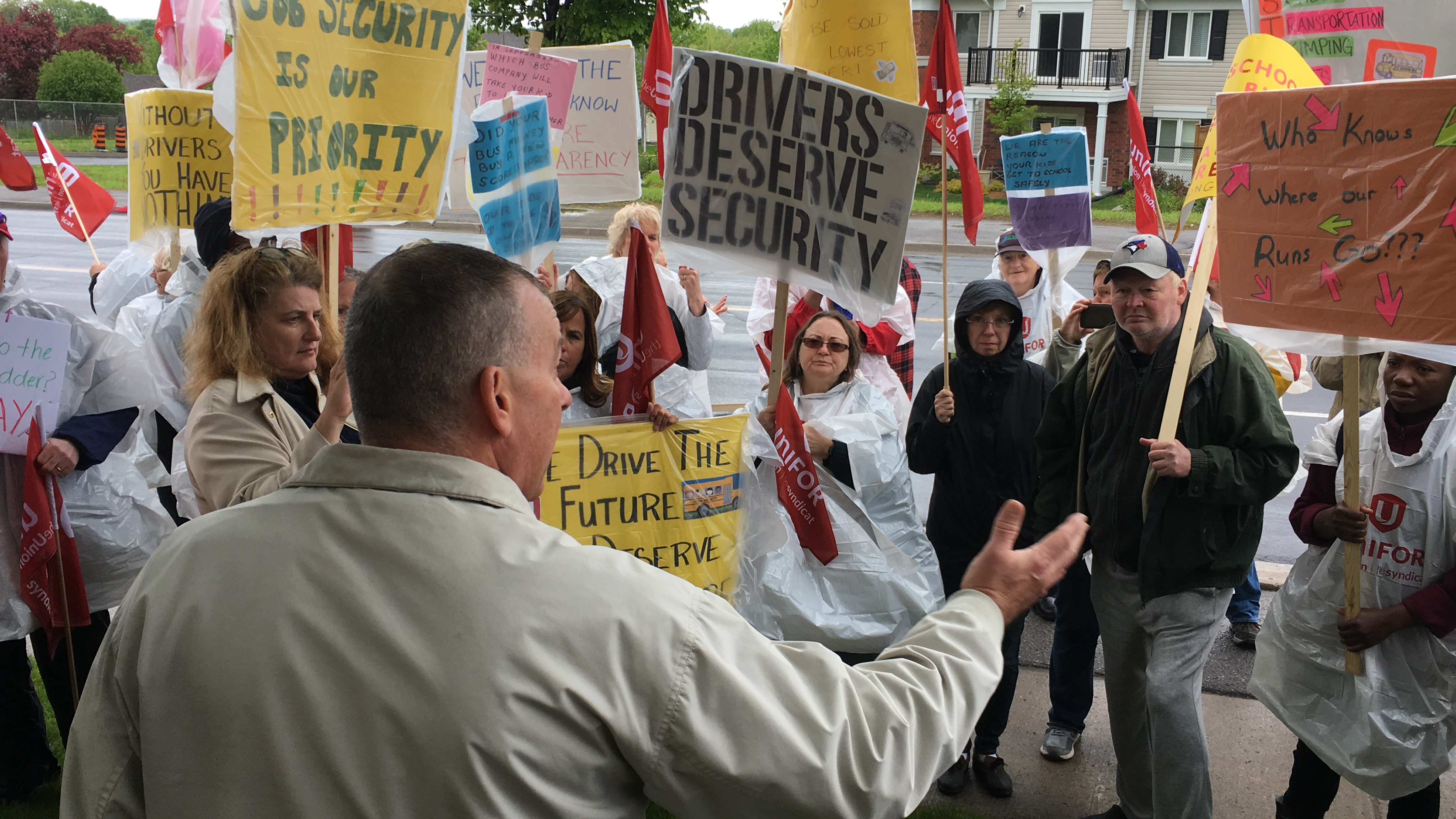 Joel Sloggett, the CAO of STSCO, met with the drivers on the front lawn of the Clonsilla Avenue office to hear their concerns.