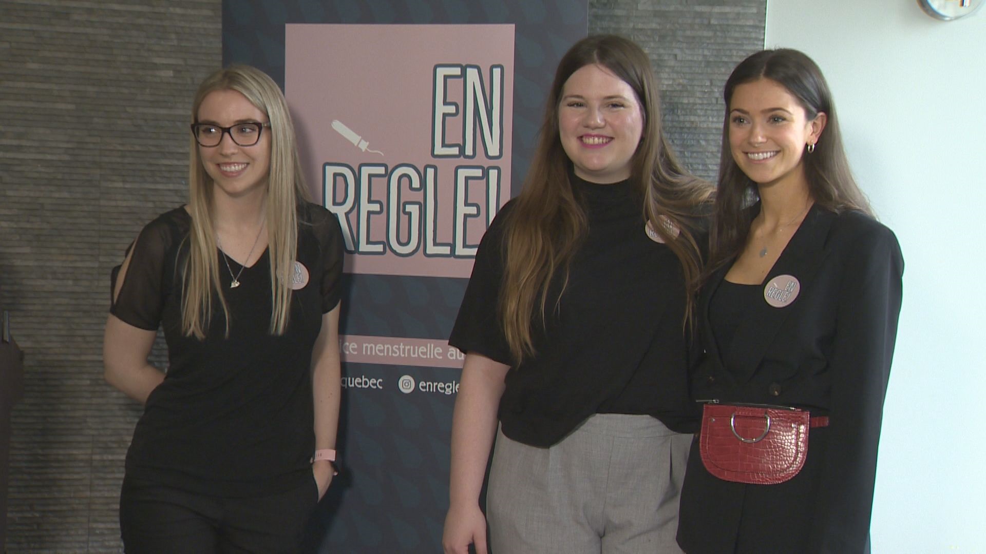 Carolanne Gagnon, Ariane Litalien and Alicia Lessard are lobbying the provincial government to make menstrual hygiene products free in all Quebec schools.