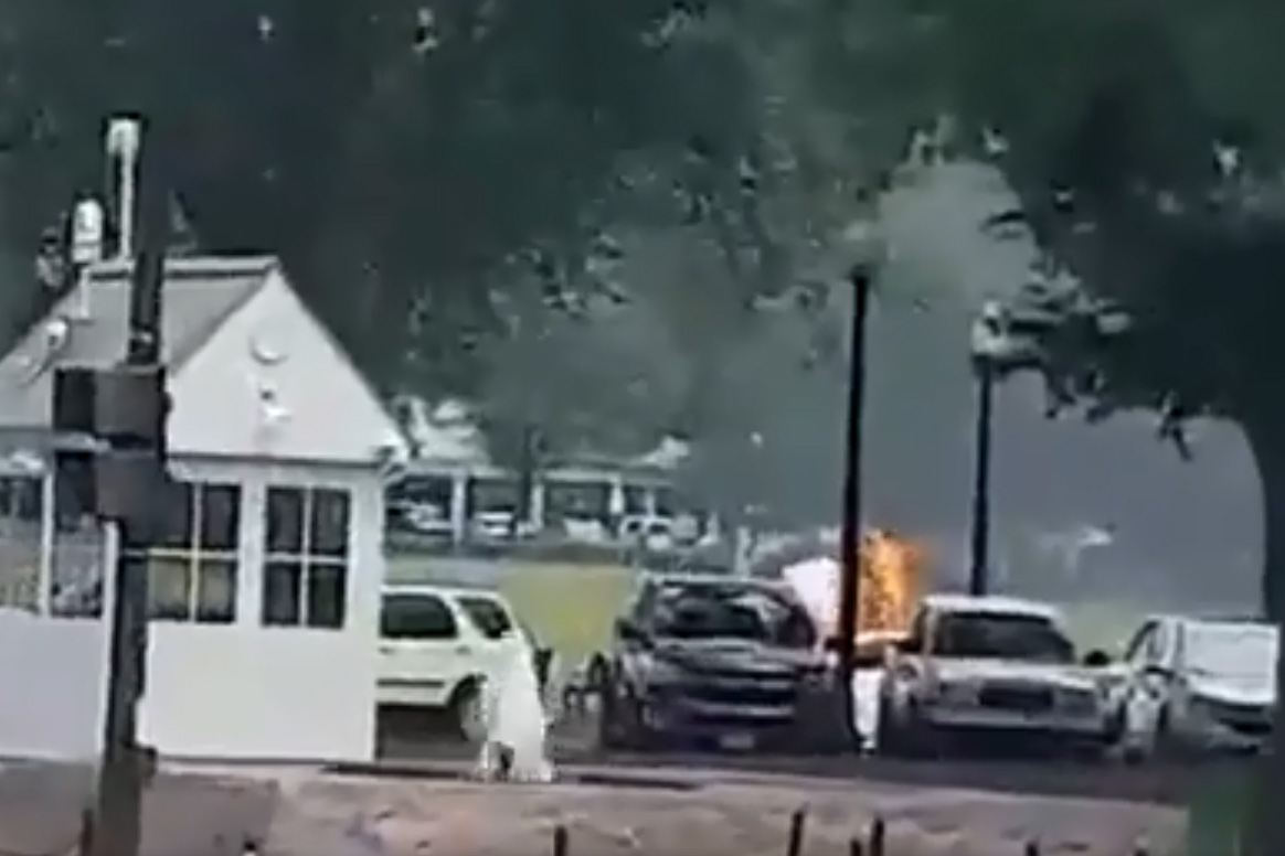 Video posted on social media shows the unidentified individual walking across the lawn while on fire. Several police cruisers can be seen responding to the incident.