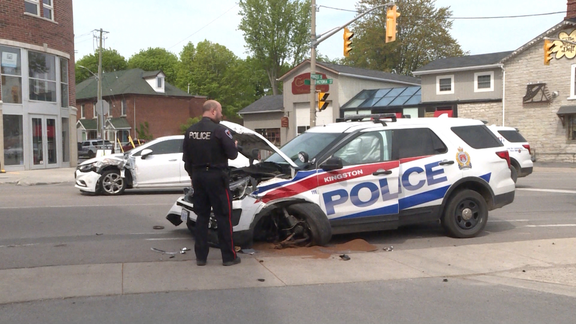 The collision happened around 2:30 p.m. at the corner of Princess and Victoria streets.