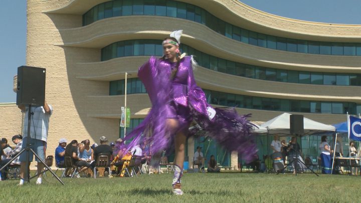 The powwow, in its fourth year, honoured students from Treaty Four Territory. It included a pipe ceremony, and traditional drumming and dancing.