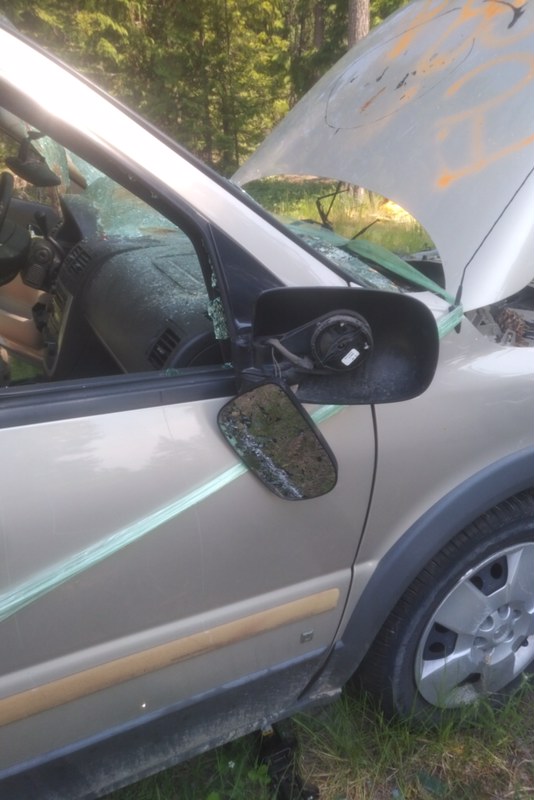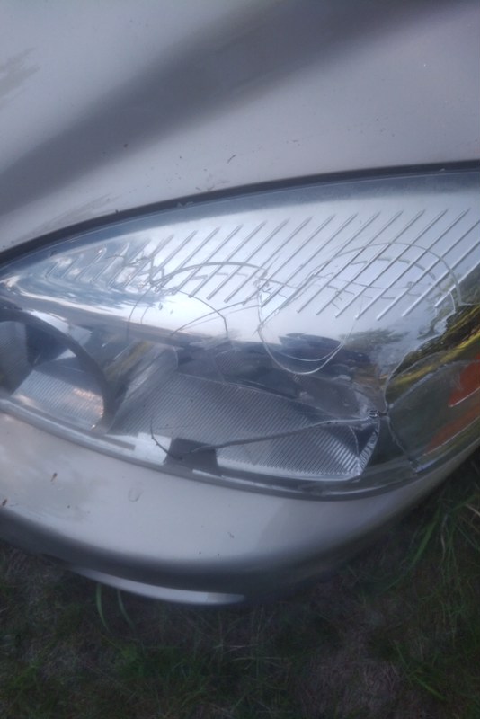 Every window of the mini-van was shattered and the dash ripped apart and damaged.