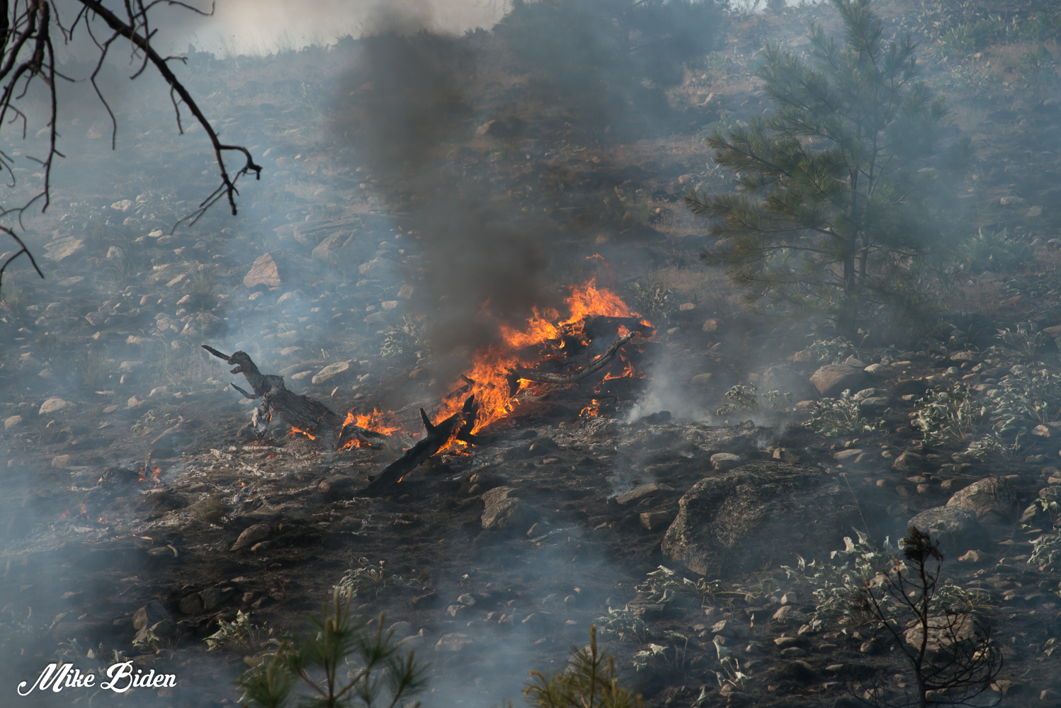 The Penticton Fire Department said the fire is burning on Saliken Rd.. on Carmi Mt.