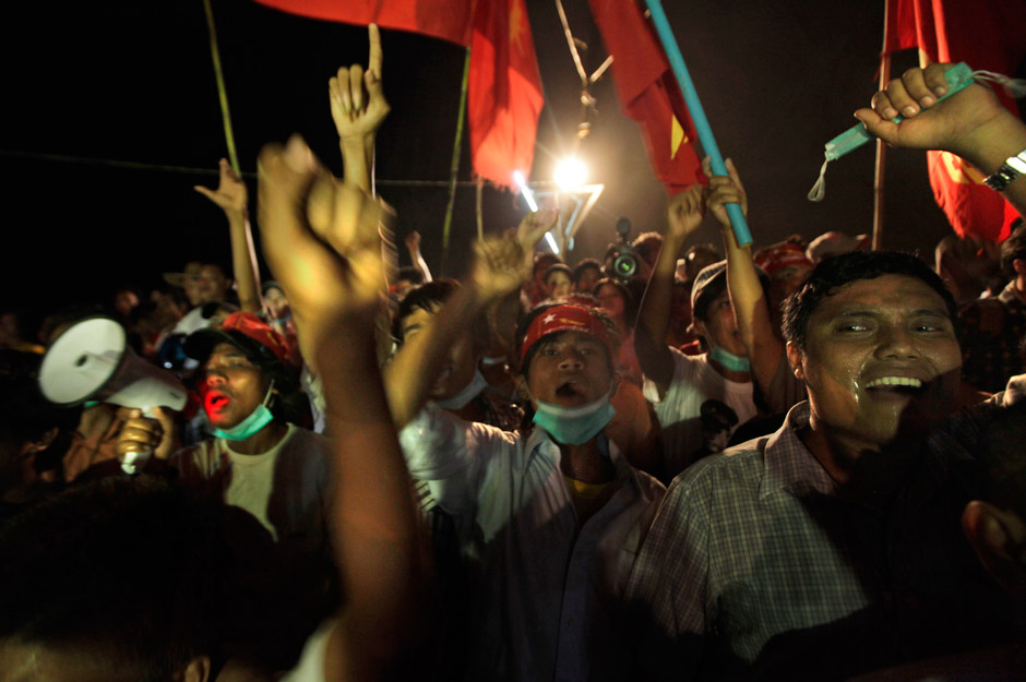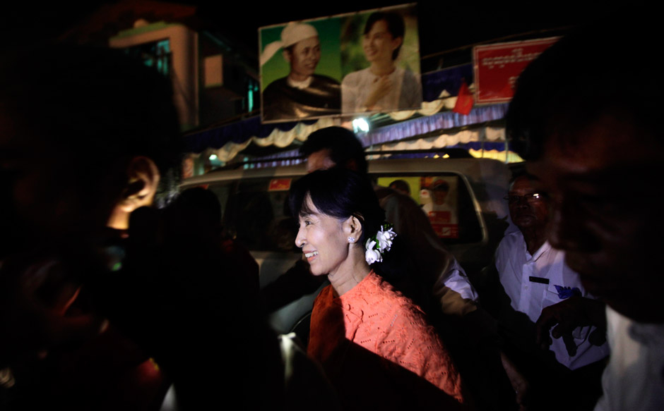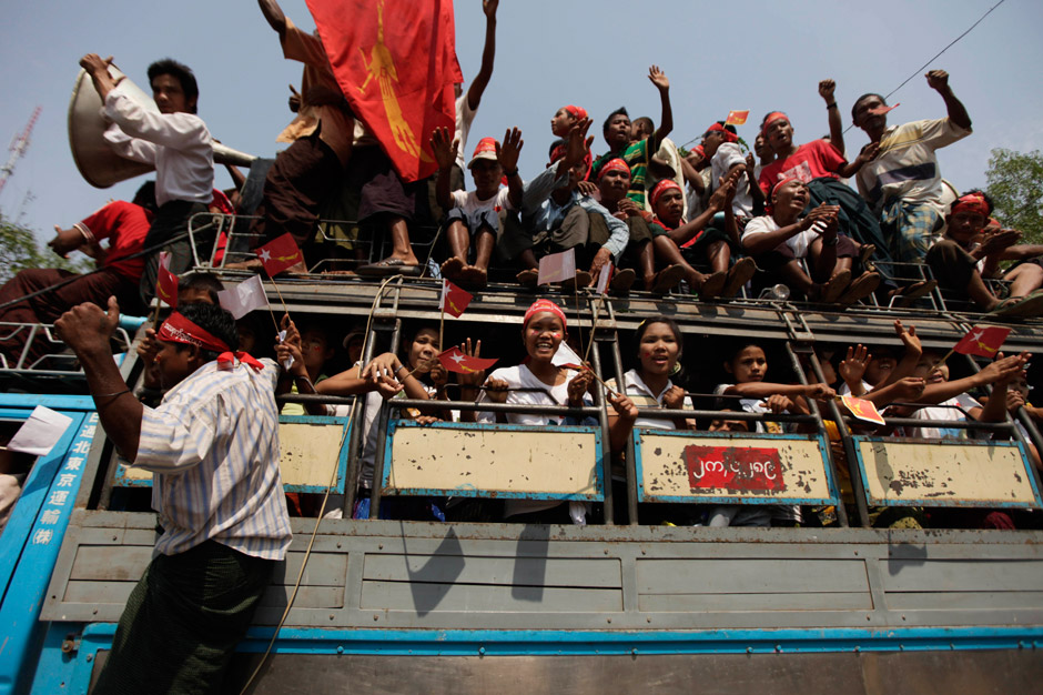 YANGON, MYANMAR – Democracy icon Aung San Suu Kyi says Myanmar’s elections cannot be called free and fair because of widespread irregularities, but that she is pressing forward with her candidacy in Sunday’s polling for the sake of the country. Here are scenes from her arrival in her constituency.