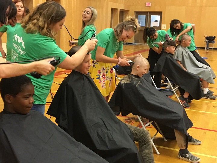 Staff and students at a Kelowna middle school raised $21,000 for B.C.’s Children Hospital this week by cutting their hair and shaving their heads.