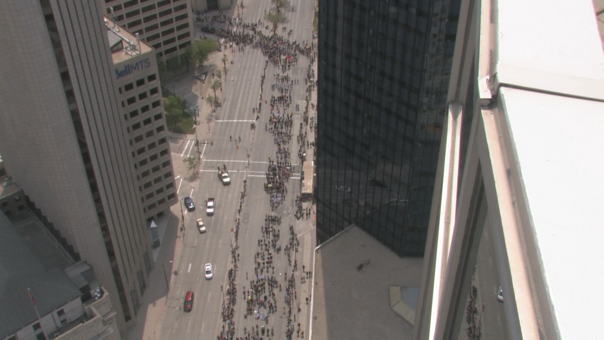 The parade continued down Portage Avenue, through Portage and Main, and ended at Waterfront Drive near The Forks.