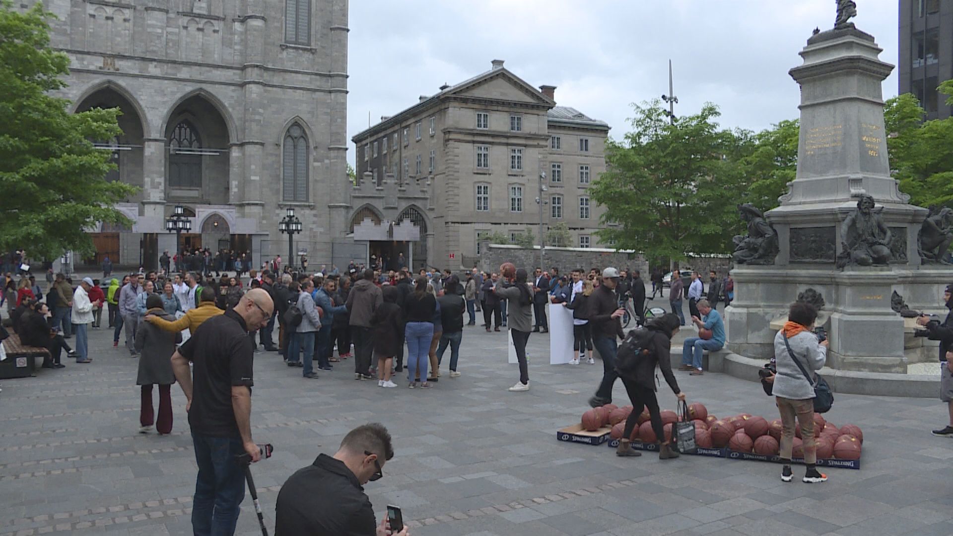 About 100 eager Montreal basketball fans lined up at Place d’Armes on Monday for the chance to win a trip to California to watch the Toronto Raptors play the Golden State Warriors in Game 3 of the finals.