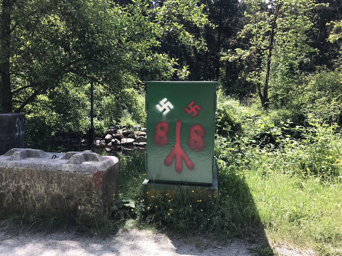 “Hey @cityofcoquitlam @CityofBurnaby @New_Westminster @TransLink – I’m not sure who is in charge of the CVG trail between North rd and Cariboo, but there is some fresh Nazi graffiti here,” wrote the Twitter user.