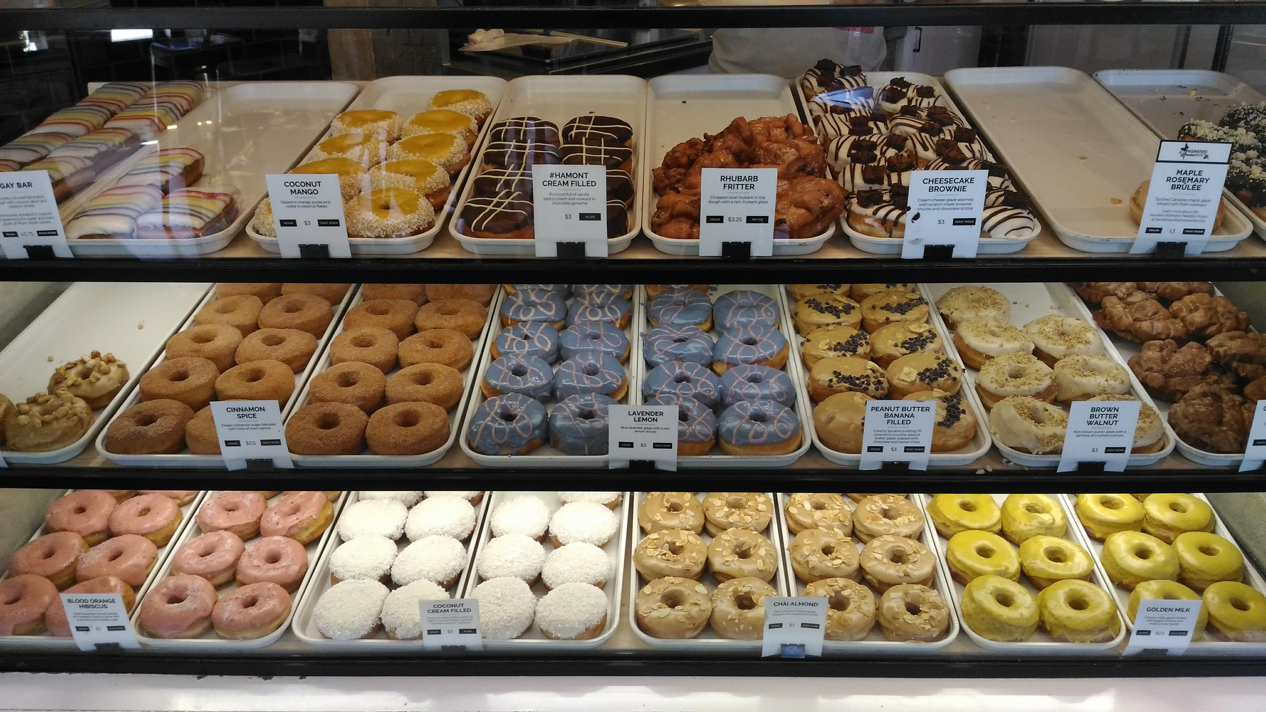 Just a heads up: many of these doughnuts are much larger than what you may be accustomed to, so go easy when ordering more than one.