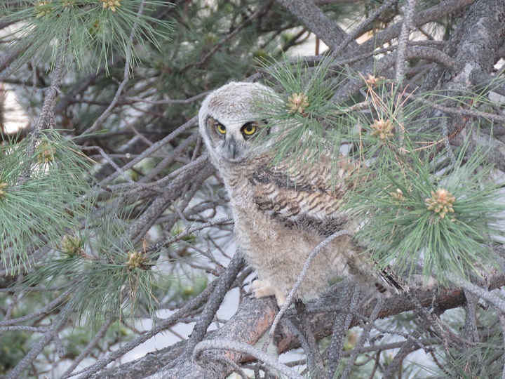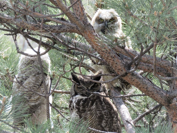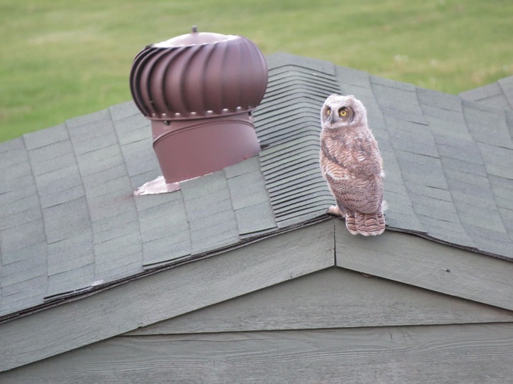 Lawlor noted the two adult owls tried calling for the fledglings, with the father owl hunting down a mouse, then calling for the fledglings from a nearby roof.