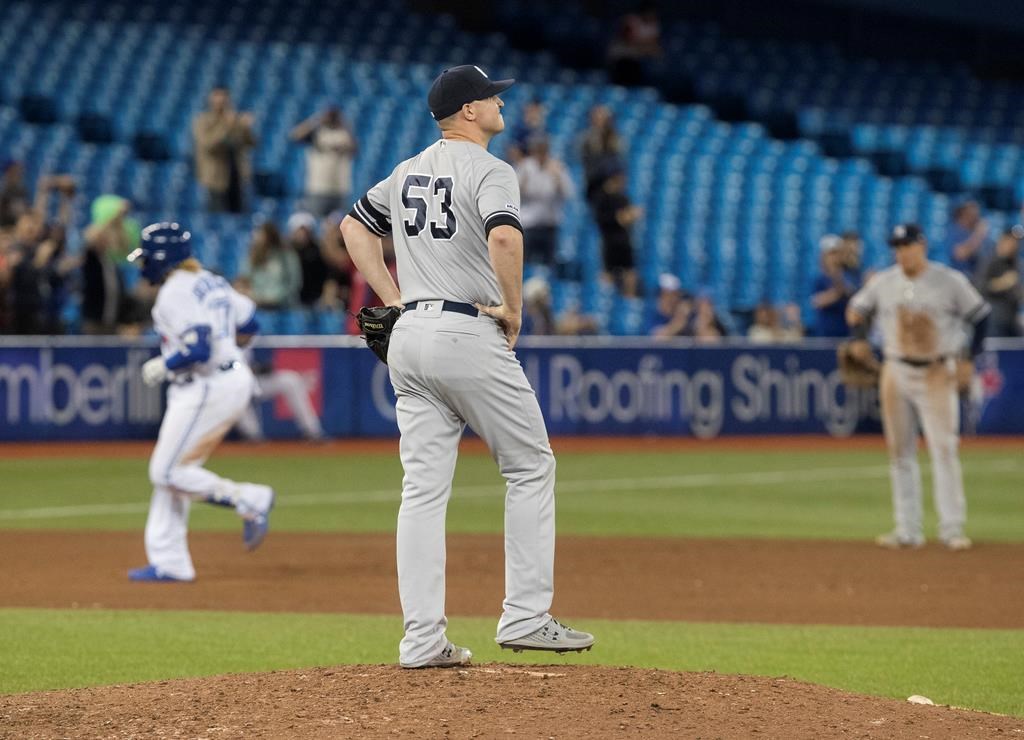 NOTES: The Blue Jays selected pitcher Braden Halladay, the son of late ace Roy Halladay, in the 32nd round of the MLB draft earlier Wednesday. … The Blue Jays and Yankees close out their three-game series Thursday. Former Toronto lefty J.A. Happ starts for New York. Edwin Jackson will start for the Jays.