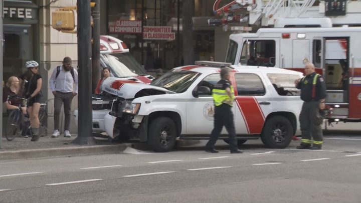 A crash in downtown Vancouver during rush hour could have been much worse if not for the quick-thinking driver of a paramedic vehicle.