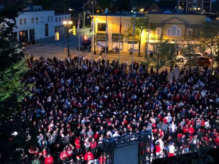 Raps fans near Welland can watch at the city’s Civic Square on the city’s giant LED screen. Viewers are encouraged to bring lawn chairs.