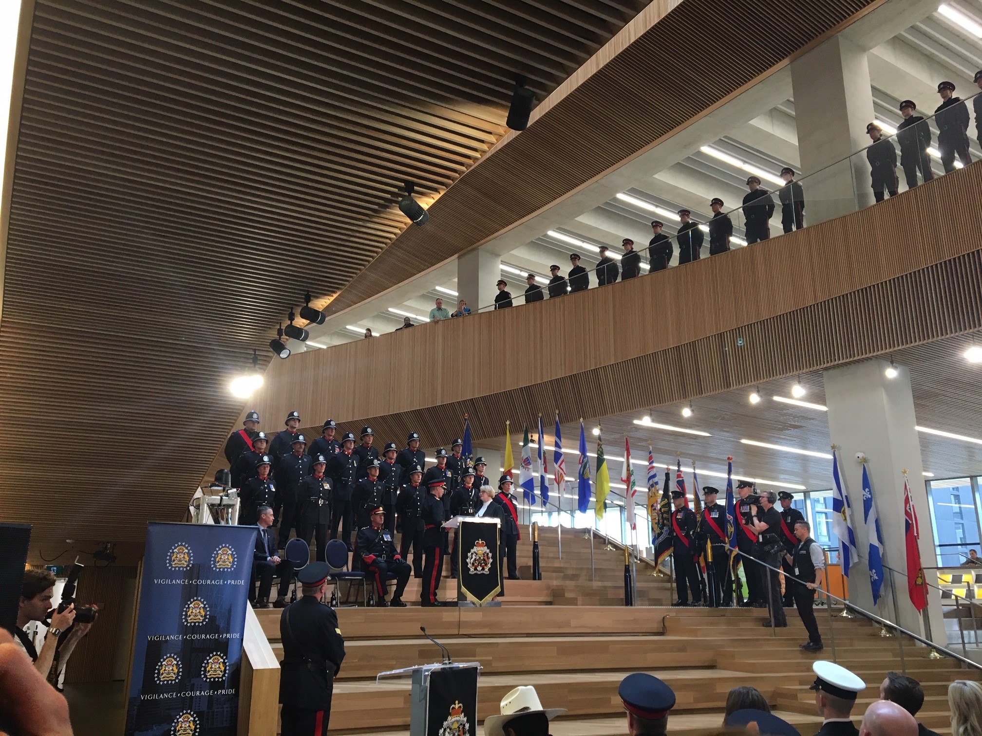 Outgoing interim chief, Steve Barlow, handed over the reins in the traditional ceremony at the Calgary Central Library. It was the first ceremony of its kind to be held in a public space.