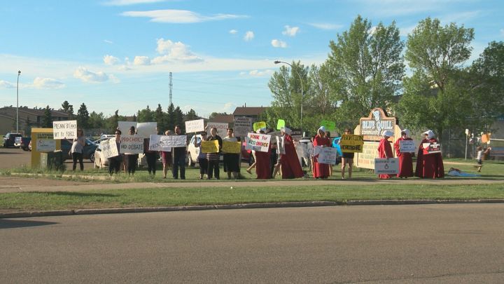 A number of pro-choice protesters gathered outside Edmonton’s Blue Quill Community League on Wednesday night to voice their opposition to a pro-life event being held at the community centre.
