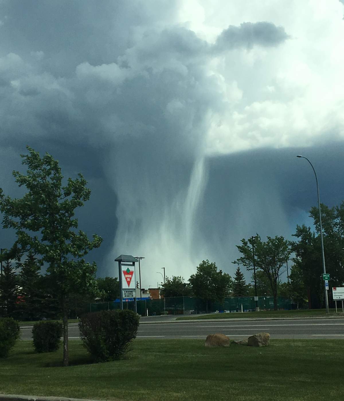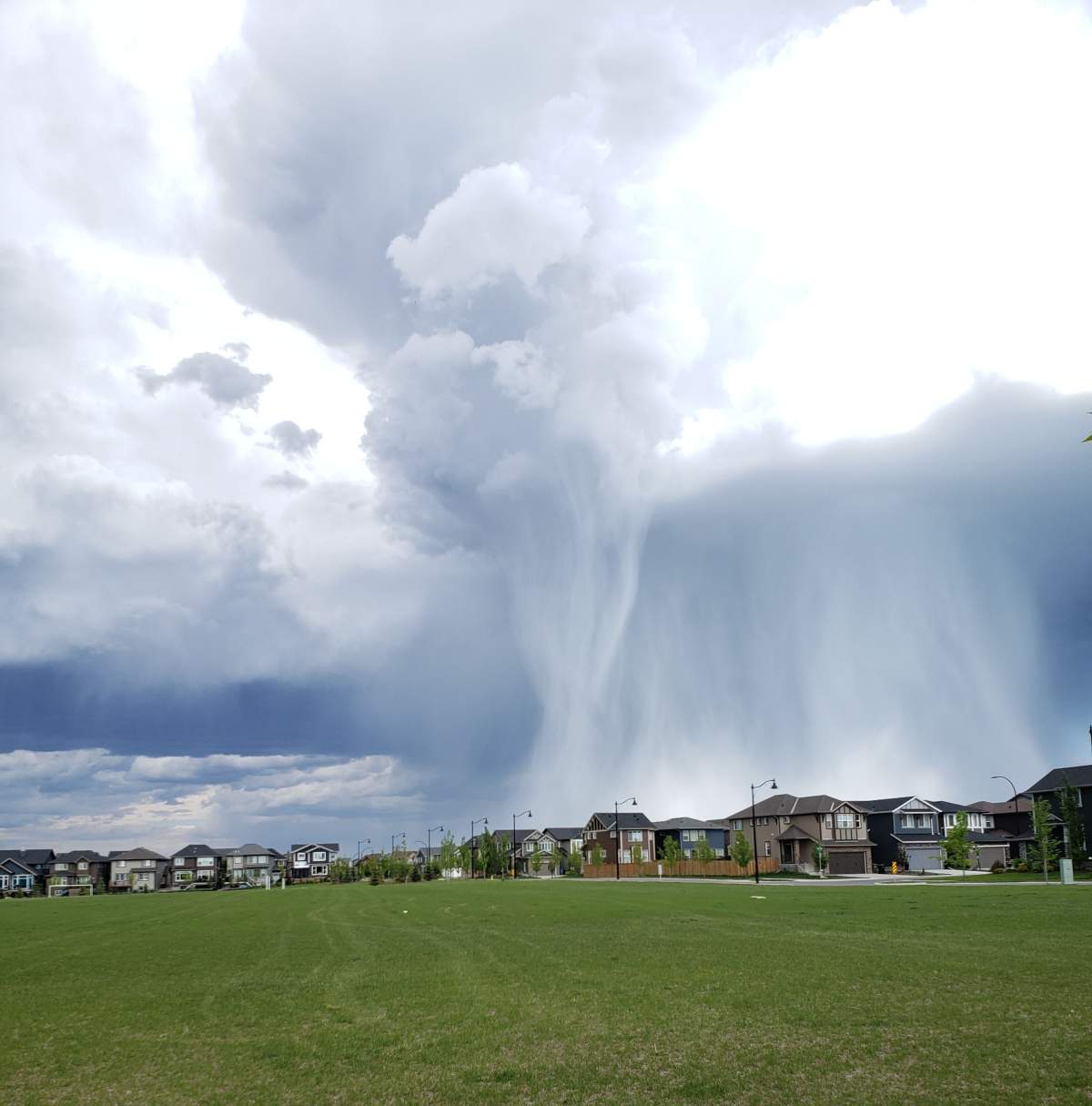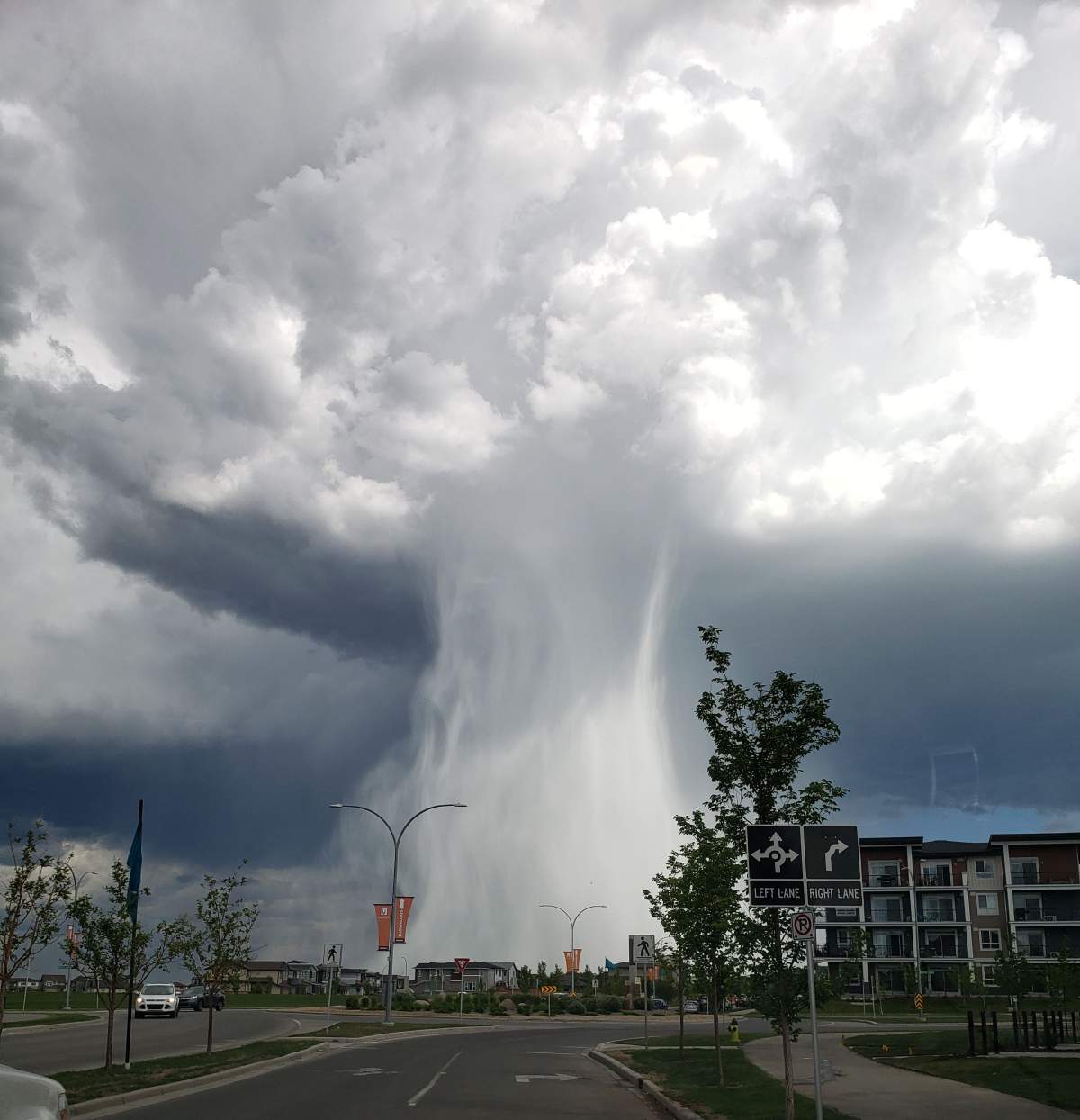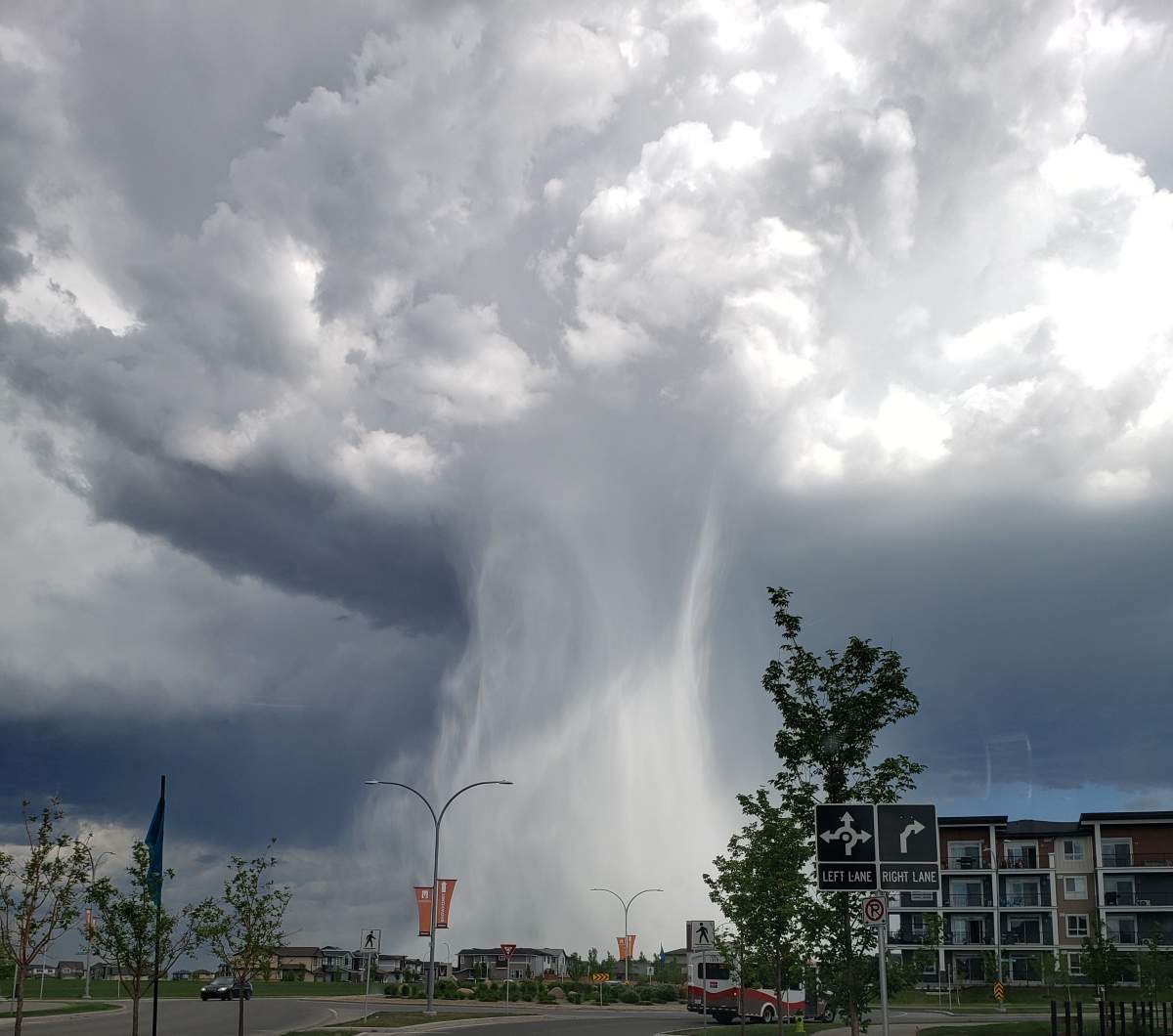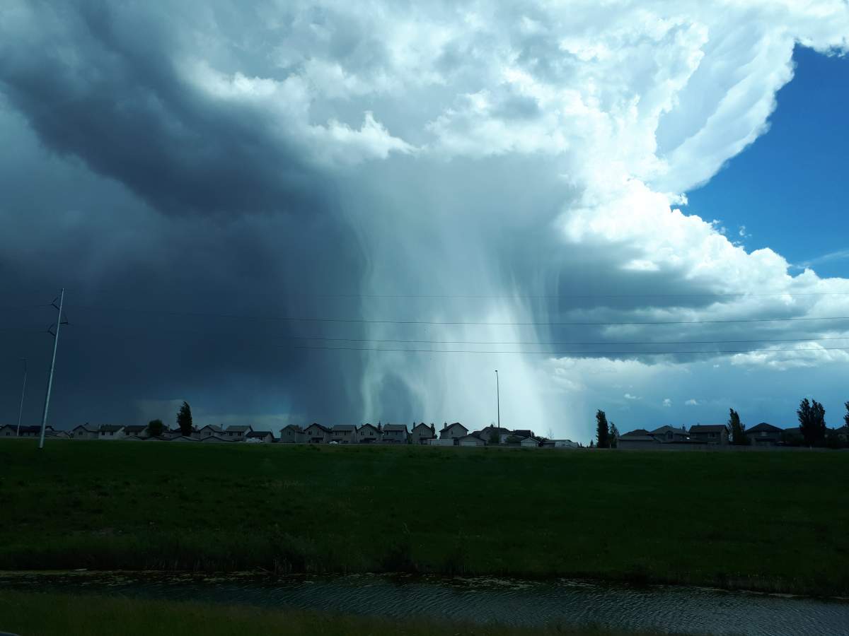 Several people in and around Calgary also captured photos of a cloudburst, a weather phenomenon in which a sudden, very heavy rainfall falls over a short period of time in a localized area.