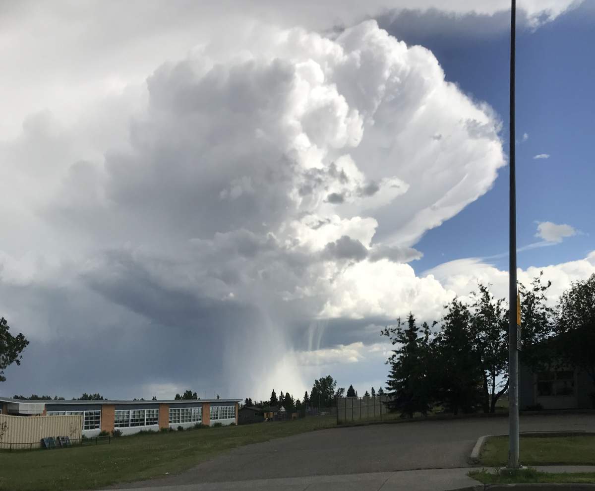 On Thursday morning, Environment Canada issued severe thunderstorm watches for several regions south of Edmonton, stretching as far west as Nordegg, to Stettler in the east. The watches also encompassed the Drayton Valley area, south to Airdrie.