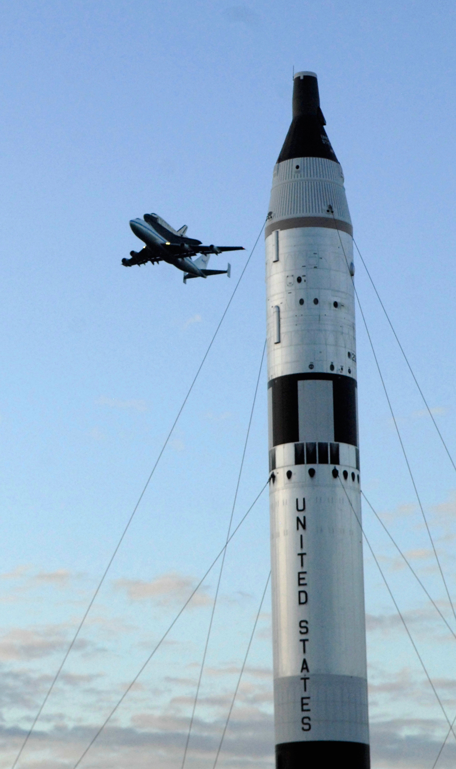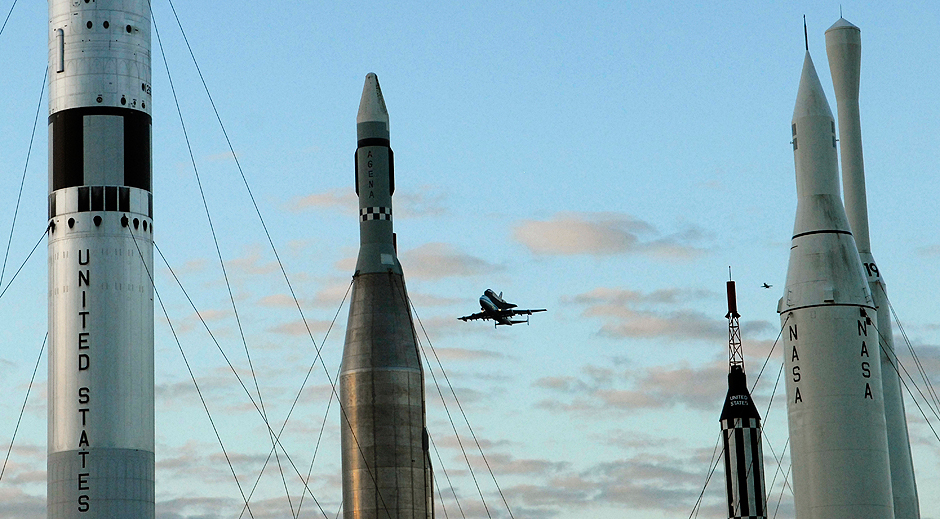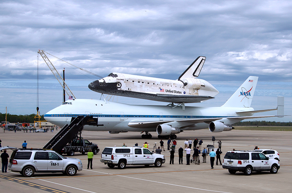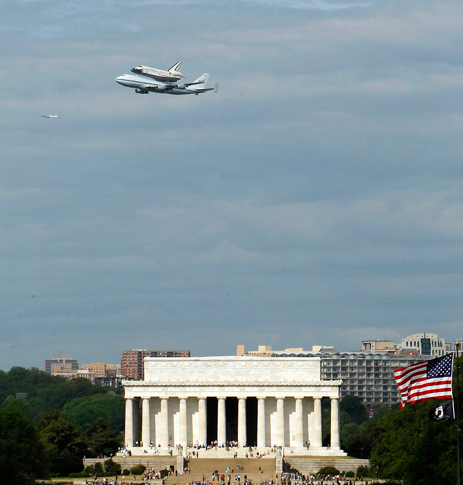 Space shuttle Discovery soared around the Washington Monument and the White House in a salute to the nation’s capital Tuesday before landing for the last time near its new museum home. The world’s most travelled spaceship took off at daybreak from Cape Canaveral, Florida, bolted to the top of a modified jumbo jet for the trip. Three hours later, the pair took a few spins around Washington at an easy-to-spot 450-metre altitude before the retired shuttle was grounded for good.
