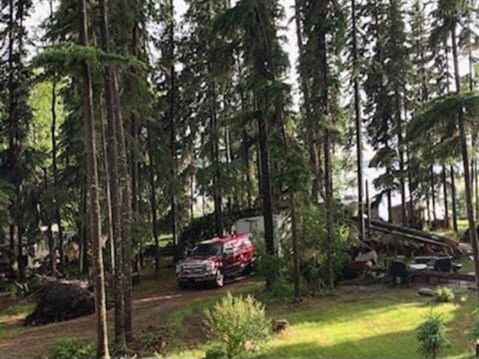 Residents at the Fawcett Lake Resort — about 240 kilometres north of Edmonton and 70 kilometres east of Slave Lake — are cleaning up after a storm blew through the area Saturday night.