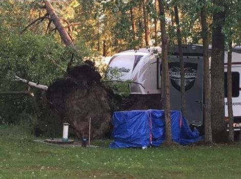 People who live there told Global News dozens of trees were uprooted, trailers damaged and that several items were picked up and blown through the air.