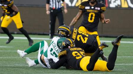 Collaros was hurt in the first quarter of the Roughriders’ CFL season opener at Hamilton on Thursday after taking a high hit from Tiger-Cats linebacker Simoni Lawrence.