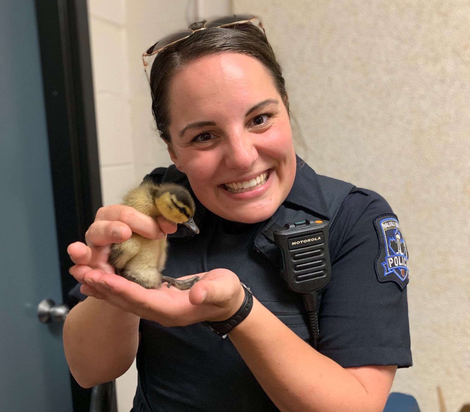One of the ducklings was rescued, and officers affectionately named it Floop.